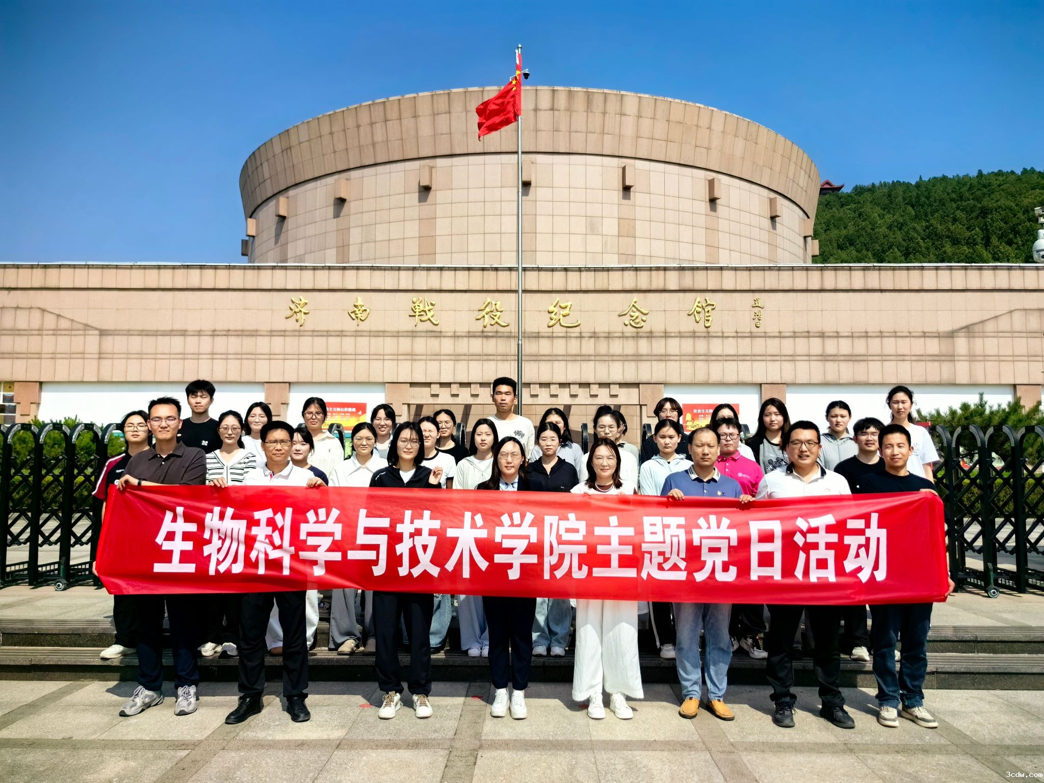 为扎实推进深入贯彻中央八项规定精神学习教育,传承红色基因,进一步加强党员党性修养与作风建设,5月16日,生物科学与技术学院赴济南战役纪念馆开展主题党日活动。学院领导班子成员、组织员、党支部书记、师生党员代表以及入党积极分子代表等50余人参加活动。